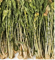 (1) 성상: 시래기는 짙은 녹색을 띠며 약간 시든 식감을 가지고 있습니다. 잎은 얇고 섬세하며 말린 허브와 비슷합니다.
